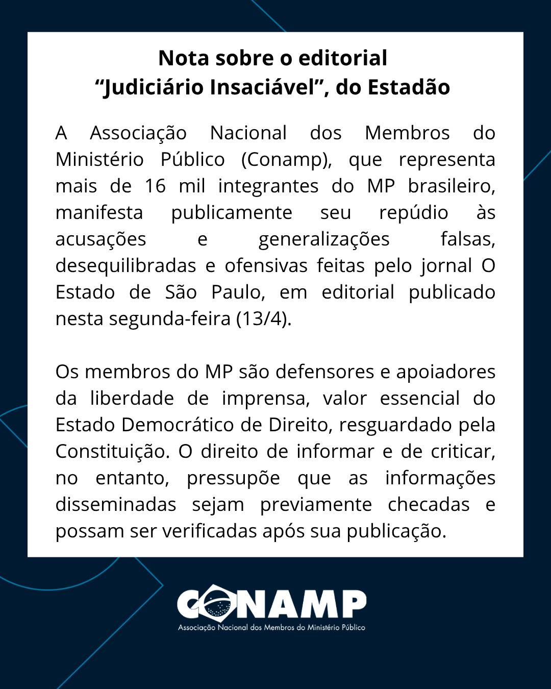 Confira a nota da CONAMP sobre o editorial “Judiciário Insaciável”